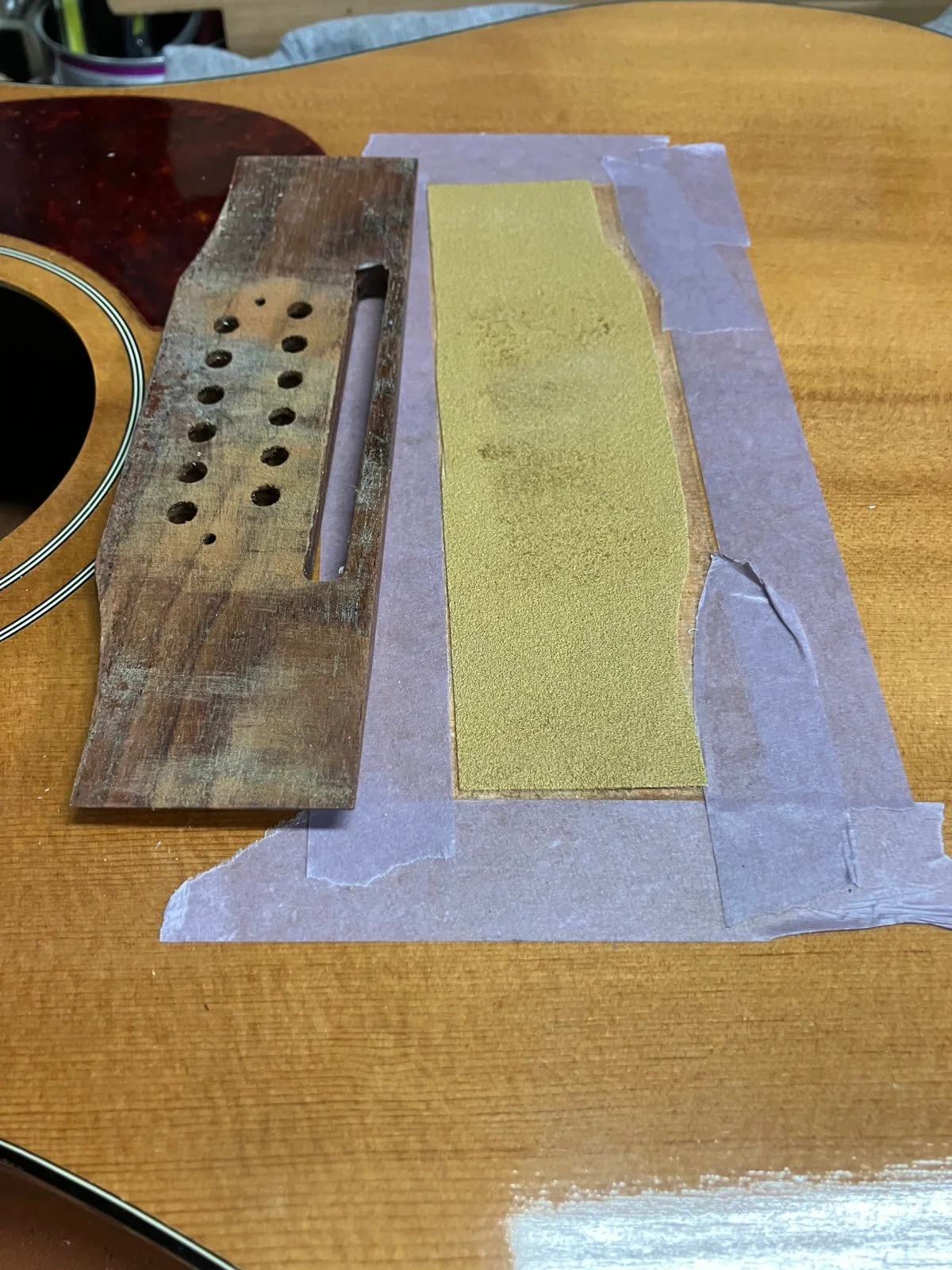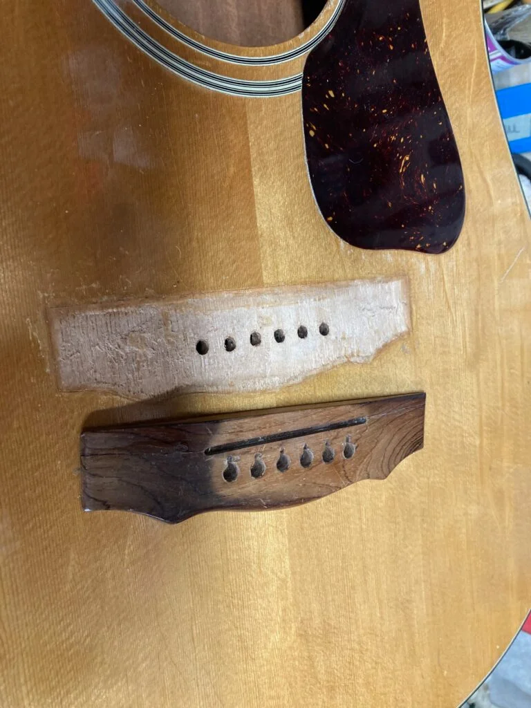 Gibson acoustic bridge removal and repair