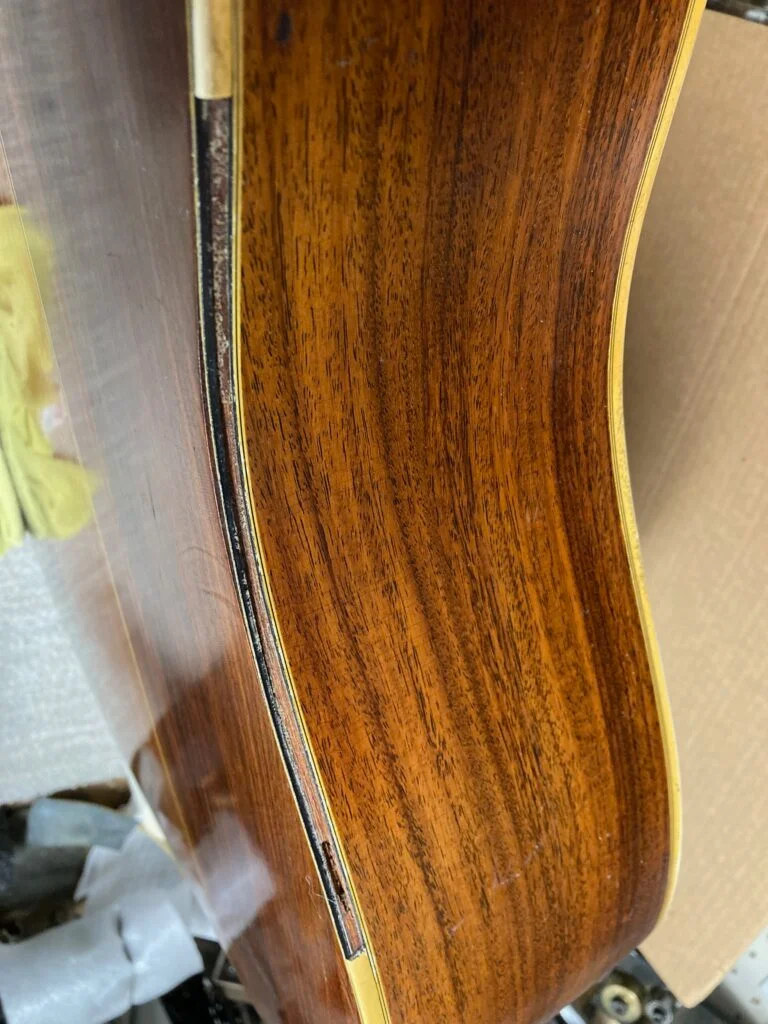 D35 Guild acoustic guitar from the 1970s. Repairs done with GluBoost products.