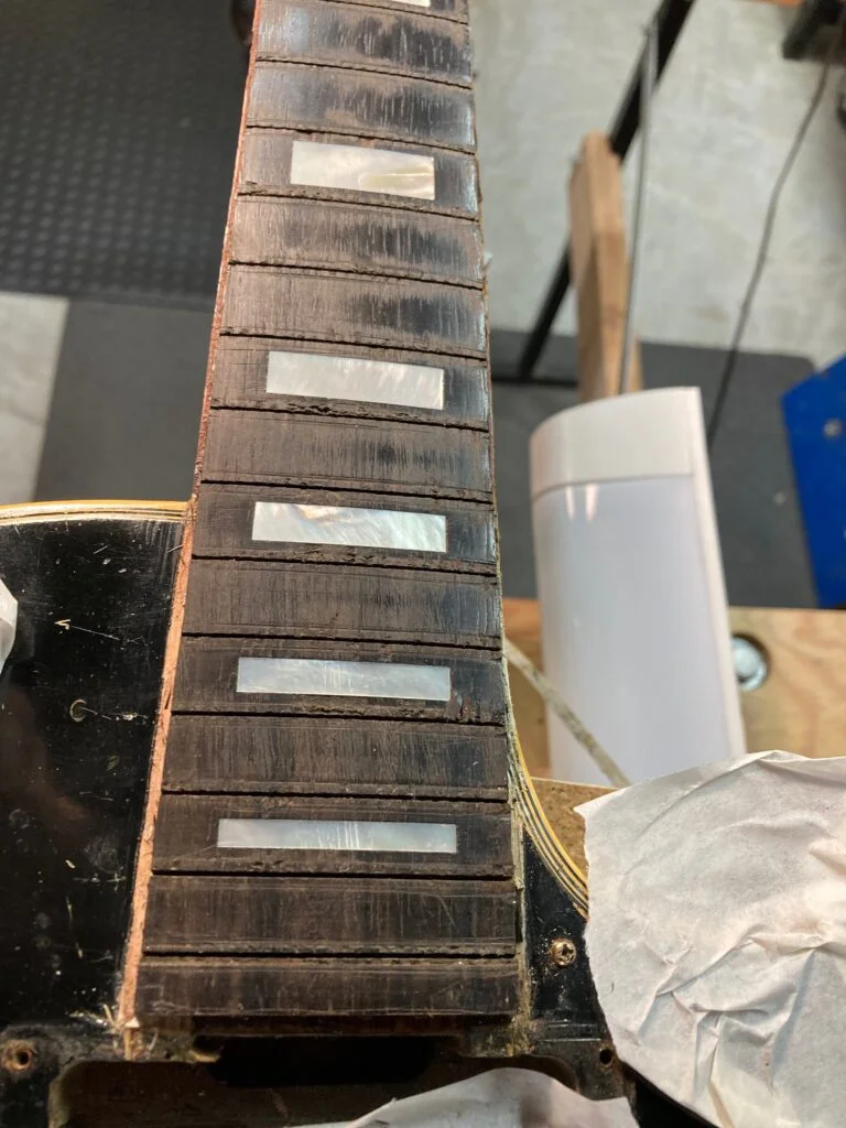 1937 Epiphone Zenith fret ends dressed and polished