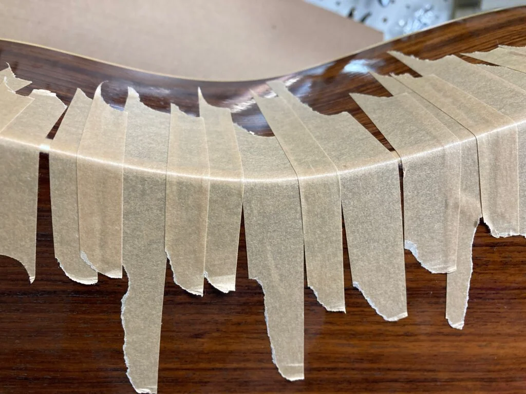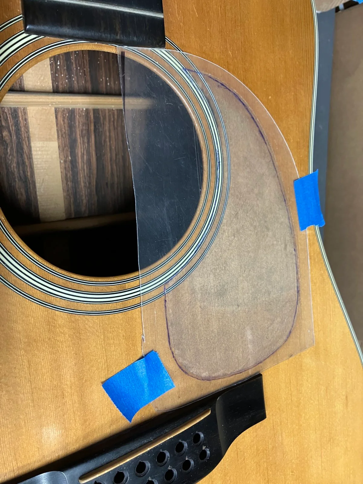Martin D35 install new pick guard and replace section of binding, stained to match original