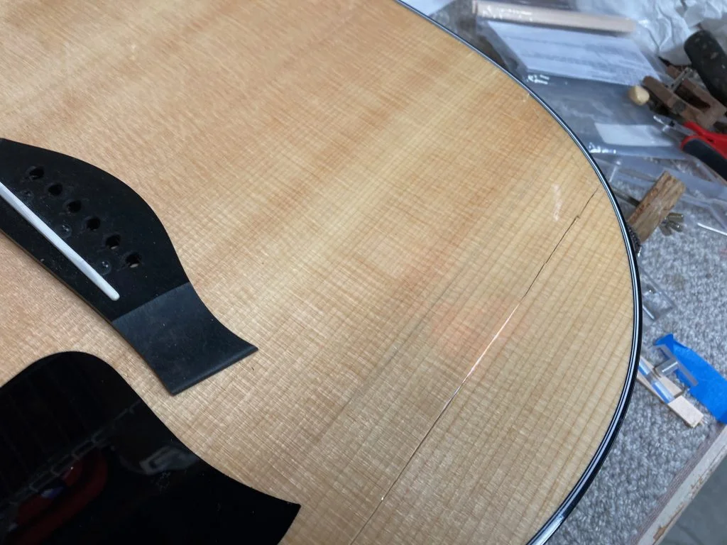 Top crack repairs on Taylor acoustic